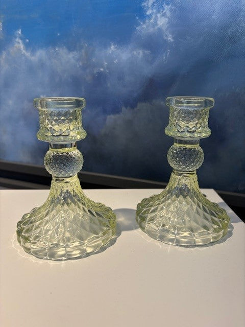 Decorative glass style small candlestick holder in various colours. The perfect center piece or to highlight your space. Light reflecting and beautiful, if we do say so ourselves!