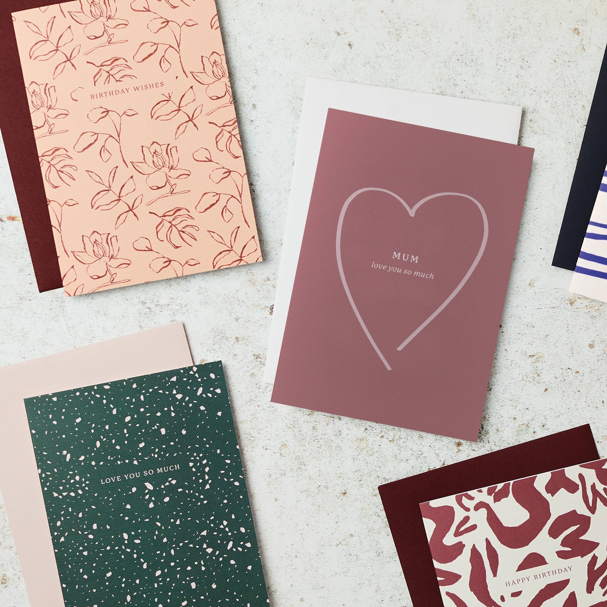 Put a smile on Mum’s face with this Love You Mum birthday card or Mother’s Day card. Handpainted with a blush background, hand drawn heart illustration and the words ‘Mum, love you so much’, this Mum Card is lovely for those who appreciate heartfelt and modern Greeting Cards. Left blank inside, this stylish Mother’s Day card allows customers to write their own special greeting, wishing her a Happy Birthday or Happy Mother’s Day. The design suits those who like a minimal and modern aesthetic.